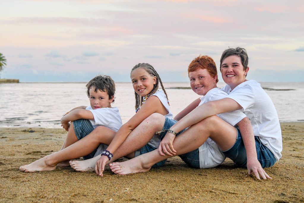 As the sun began to lower, we transitioned to the beach for the second part of the session — a more intimate time with Annita, her husband, and their four beautiful children.