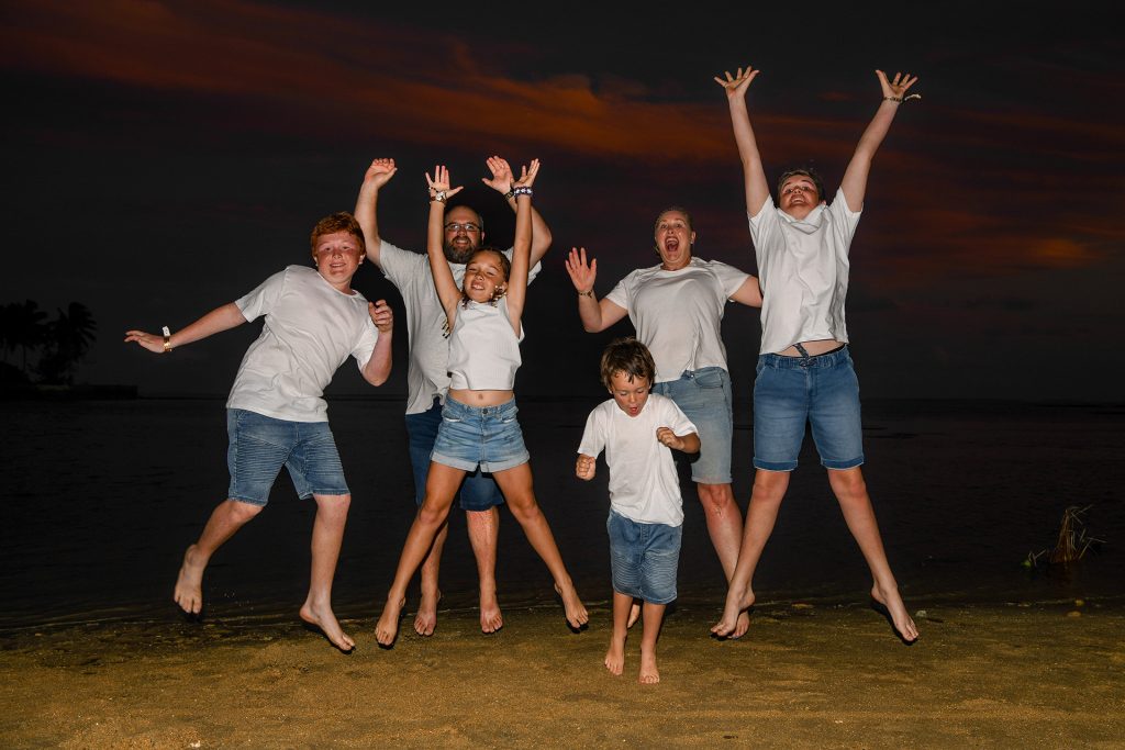 Rather than asking everyone to “stand still and smile,” I create playful prompts: walking together, group hugs, cheering, tickle fights with the kids, or whispering something funny. These little moments bring out genuine laughter and natural expressions, especially in big groups where energy is high.